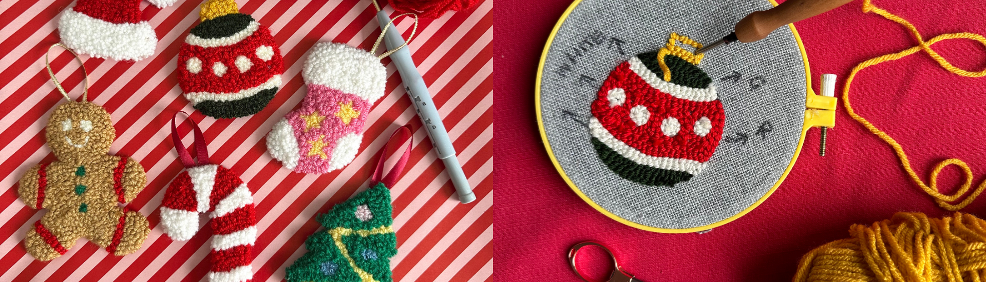 Learn how to tuft using a punch needle and create your own Christmas decoration to hang up on your Christmas tree!