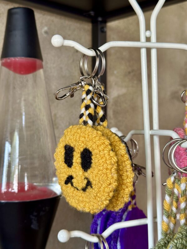 Tufted Smiley Face Key Ring / Bag Charm (Yellow)