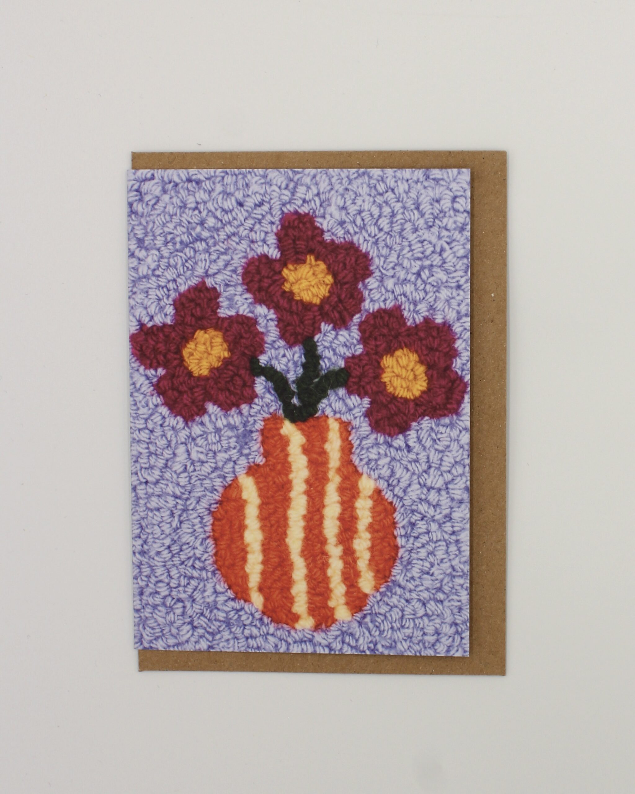 I design each card by crafting punch needle pieces and photographing them, bringing the texture of the original artwork into print.