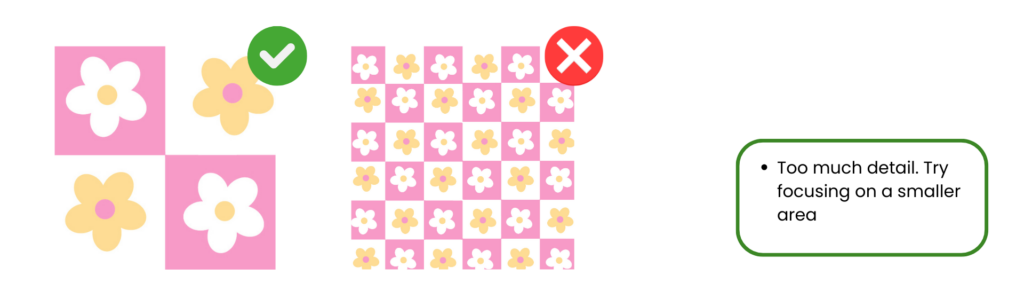 ✅ Bold shapes and block colours work best